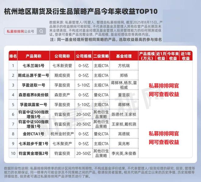 其中,在赢私募收益位居第1,旗下4只期货及衍生品策略产品近1年平均收益约为***%,其中今年来平均收益约为***%。 在赢私募成立于2014年,公司现有资深基金经理6人,专业投研团队11人,均毕业于国内一流院校,核心量化人才为国家A类人才。公司主张逆向大周期投资,认为掌握事物不变的常则即可立于不败之地。 钧富投资位列第2,旗下10只产品近1年期货及衍生品策略平均收益约为***%,其中今年来平均收益约为***%。 钧富投资成立于2018年9月,从券商、银行、私募、海外对冲基金等金融机构引进多位资深从业人员,大部分核心成员具有名校硕士背景,平均从业年限超过10年。该私募主要从事非相关大类资产的组合投资,产品涵盖资产配置类、中证500指数增强、沪深300指数增强等十二种类型。 “永安系”的钱唐永利资管位列第5,旗下3只期货及衍生品策略产品近1年、今年来平均收益分别约为***%、***%。 浙江钱唐永利资管成立于2016年,主营期货投资,同时涵盖股票、固定收益等大类资产,践行“研究创造价值、投研与产业相结合”的发展思路,参股子公司物产永利隶属于物产中大。物产中大是中国具有影响力的大宗商品供应链集成服务商、浙江省政府直属的特大型国有企业,2024年位居《财富》世界500强排行榜第150位。该私募实控人李金禄曾任永安期货党委委员、总经理助理、资管部投资经理,现为永利系列基金经理。 风险揭示:投资有风险,本文不构成任何宣传推介及投资建议。本资料涉及基金的过往业绩不预示其未来表现,基金管理人管理的其他基金的业绩并不构成基金业绩表现的保证,深圳市前海排排网基金销售有限责任公司(“我司”)未以明示、暗示或其他任何方式承诺或预测产品未来收益。 本资料所涉产品数据及信息来自基金管理人、托管估值机构或外部数据库等,我司无法对其真实性、准确性、完整性作出实质性判断和保证,投资者须以中国证监会资本市场电子化信息披露平台、基金管理人官方网站及其委托的基金估值核算机构发布的内容为准。投资者应谨慎注意各项风险,认真阅读基金合同、基金产品资料概要等销售文件,充分认识产品的风险收益特征,并根据自身情况做出投资决策,对投资决策自负盈亏。我司不从事任何基金评价业务,相关排行(如有)均为内部评定结果,仅供参考。 【版权声明】:未经许可,任何个人或机构不得进行任何形式的修改或将其用于商业用途。转载、引用、翻译、二次创作(包括但不限于以影音等其他形式展现作品内容)或以任何商业旦的进行佳用的,必须取得我司许可并注明作品来源为私募排排网,同时载明内容域名出处。封面由豆包AI生成。 |
