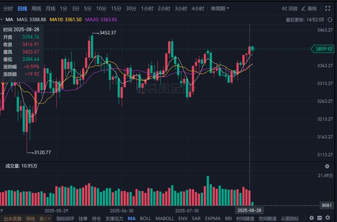 周四,美联储理事沃勒明确支持9月降息25个基点,并预计未来三到六个月将进一步降息。这不仅是沃勒个人观点的表达,更是美联储高层官员首次明确支持9月启动降息。他的言论与美联储主席鲍威尔上周在杰克逊霍尔年会上的表态形成呼应——鲍威尔当时也表示“美联储对降息持开放态度”。这一鸽派信号为金银价格提供了上行动力。 与此同时,美联储理事库克起诉特朗普总统,挑战其罢免自身职务的合法性这场美联储与白宫之间的法律斗争引发了市场对美联储独立性担忧,进一步强化了黄金的避险属性。周四,现货黄金最高触及3423.07美元/盎司。