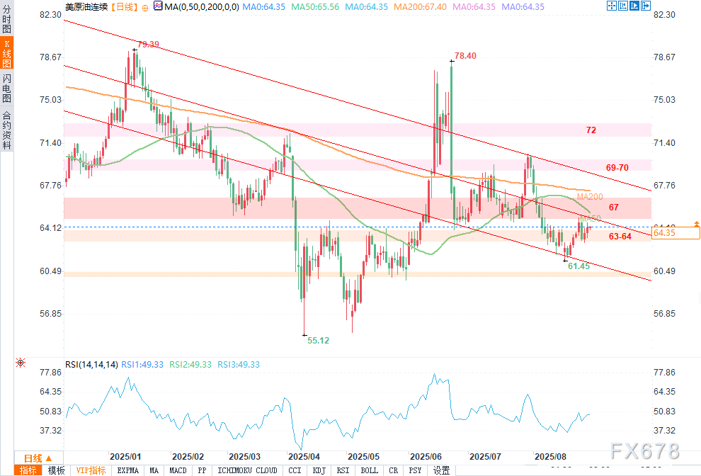 原油价格在63至64美元区间经历了为期七天的盘整后,战争局势向好的预期以及供应减少的前景,推动油价从低点反弹。 ![]() WTI原油此前的低点,促使其形成了一个中期下行通道;而自上次技术性反弹以来,油价便开始持续冲高。 此前的买盘积累曾推动油价突破通道束缚;如今,基本面局势的僵持不下,进一步助推了当前的涨势。 美国总统特朗普再次强调对印度实施制裁,似乎通过经济施压迫使俄罗斯停火,已成为达成某种休战协议的唯一可行途径之一。 美国原油4小时图 ![]() 当前上涨K线中,看涨动能正不断积聚——最新消息面似乎持续吸引买家入场。 需重点关注油价能否上破4小时图上的200期移动平均线(200-period4HMA):一旦突破该位置,预计将吸引更多买盘进场,进一步推升油价。 以下是西德克萨斯中质原油(WTI)图表中需重点关注的关键价位: 阻力位 65美元关键枢纽区间(目前正处于测试阶段) 周一高点与4小时图200期移动平均线重合位:65.70美元 66至67美元区间中段价位 高位阻力区间:67.30至68美元(与日线图50期及200期移动平均线形成共振) 支撑位 62.00至62.50美元盘整支撑区间 周三低点:62.19美元(当前形成双重底形态) 5月波动区间低点:60.5美元 2025年低点区间:55至57美元(主要支撑位) 过去几周,市场似乎积累了相当规模的空头头寸;若油价持续上行,可能触发“空头回补”请持续关注前文提及的4小时图200期移动平均线。 |