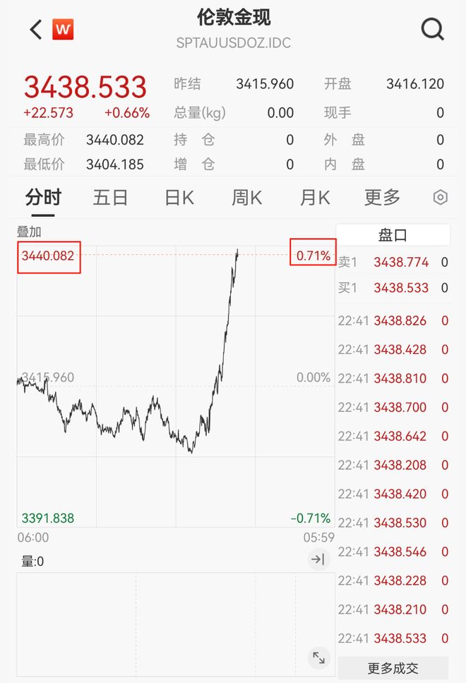 黄金,突然飙涨! 8月29日晚间,伦敦金现向上拉升,迅速突破3430美元/盎司关口,触及3440美元/盎司,盘中涨幅超0.7%。