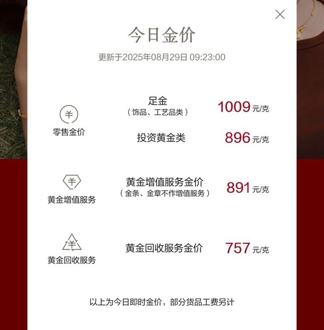 实物黄金方面,国内多数品牌黄金首饰克价已突破1000元/克。
