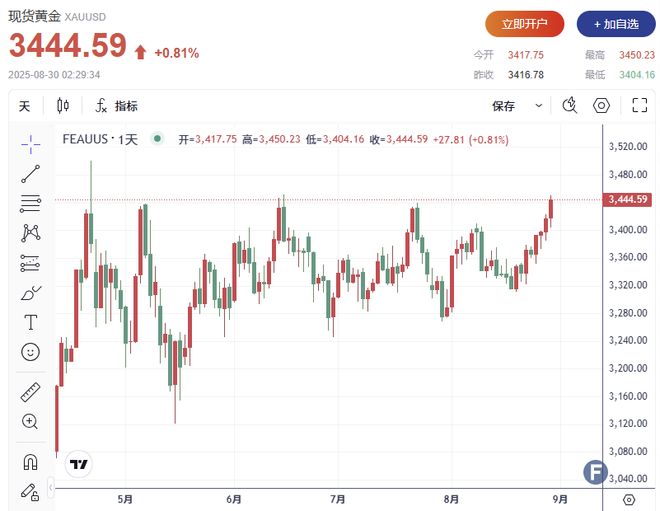 FX168财经报社(北美)讯 周五(8月29日),由于投资者权衡美国经济数据与美联储未来走向的不确定性,金价大幅走高逼近历史纪录。 截至发稿,现货黄金上涨 0.81% 至每盎司 3,444.59美元,有望录得自4月以来最佳单月表现。 (图源:FX168) 推动金价上涨的,是最新数据显示美国通胀依然顽固:作为美联储偏好的指标,个人消费支出(PCE)物价指数仍远高于决策者的舒适区间。同时,7月美国消费者支出创下四个月来最大增幅,显示需求依然强劲。 交易员加大了对美联储9月降息的押注,预期降息25个基点的概率已升至 89%,高于数据公布前的 85%。降息通常利好无息资产如黄金。同时,美元指数本月下跌约 2%,也为金价提供支撑。 High Ridge Futures金属交易主管 大卫·梅格(David Meger) 在接受路透社采访时表示:“市场预期美联储今年可能降息一次甚至两次,这对包括黄金和白银在内的大宗商品价格构成普遍利好。” 美联储独立性阴影 与此同时,美联储独立性的不确定性继续困扰市场。本周早些时候,美国总统 唐纳德·特朗普(Donald Trump) 罕见宣布解雇美联储理事 丽莎·库克(Lisa Cook)。在周五的一次紧急听证会上,联邦法官表示将考虑是否发布命令阻止特朗普的解雇决定。 德国商业银行(Commerzbank)在报告中指出:“黄金正在从这种关于美联储独立性的担忧中受益,仅过去两天,黄金ETF就流入近15吨。然而,金价在3,400美元以上的上行动能正变得愈发有限。” Buffalo Bayou Commodities宏观交易主管 弗兰克·蒙卡姆(Frank Monkam) 在接受彭博采访时补充道:“与美联储及整体机构独立性相关的地缘政治不确定性,为黄金再添一层避险买盘。”他还表示,市场预期9月各国央行将进一步增持黄金储备,也为金市提供额外支撑。 投资者信心与前景 作为政治与经济动荡中的首选避险资产,黄金今年迄今已上涨逾 30%,并在4月创下 3,500美元/盎司 的历史新高。当前避险情绪、美元走弱及央行购金预期,均使市场看涨情绪保持高位。 |