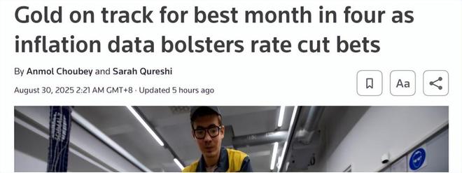 (图片来源:路透社) 当地时间周五,美盘交易时段,现货黄金价格上涨0.8%,8月累计涨幅达4.7%。美国12月交割的黄金期货价格上涨1.2%。同期,美元指数日内走势相对稳定,但月度累计跌幅超2.2%。美元走弱使得以美元计价的黄金对海外买家更具吸引力。 High Ridge Futures金属交易总监David Meger表示:“市场预计美联储今年将实施一次甚至两次降息,这一预期对包括黄金和白银在内的大宗商品价格构成整体支撑。”截至目前,交易员们已将美联储在9月份政策会议上降息25个基点的预期提升至近89%,高于此前的85%。 此外,德国商业银行在一份报告中分析称,围绕美联储政策独立性的不确定性正推动资金持续流入黄金ETF,近两日增持规模接近15吨。报告同时指出,金价在突破3400美元后,进一步上行空间或逐渐收窄。 |