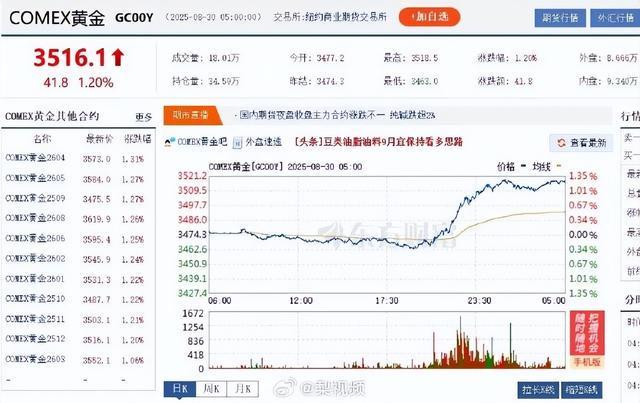 8月30日,COMEX黄金期货涨1.2%,报3516.1美元/盎司,本周累涨2.86%,8月份累涨5.2%。COMEX白银期货涨2.64%,报40.75美元/盎司,本周累涨超4%,8月份累涨10.76%。 实物黄金方面,国内多数品牌黄金首饰克价已突破1000元/克。 据中国基金报,近期,华尔街持续唱多黄金。高盛预计到2025年底,金价将升至每盎司3700美元;到2026年中期,金价将进一步攀升至每盎司4000美元。 美国银行分析师预计,金价的涨势将继续,到2026年上半年,金价将触及每盎司4000美元。分析师称:“在通胀加剧之际,潜在的降息为美元贬值创造了肥沃的土壤。在通胀持续走高的环境下降息,极有可能推高金价。” 来源:现代快报/现代+综合财联社、中国基金报 |