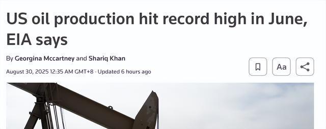 来源:环球网 【环球网财经综合报道】据路透社等外媒报道,当地时间周五,美国能源信息署(EIA)发布的石油供应月度报告显示,6月份美国原油日产量达到1358万桶,创下历史最高纪录,较此前发布的初步周度估算数据高出约15万桶/日。在原油产量增长的推动下,6月美国液体燃料总产量也攀升至2110万桶/日的峰值,环比增长约14.5万桶。