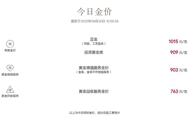 COMEX黄金期货涨1.2%,报3516.1美元/盎司,本周累涨2.86%,8月份累涨5.2%。 受益国际金价持续走强,港股黄金股多数上涨。截至29日收盘,中国黄金国际(02099.HK)涨8.64%、潼关黄金(00340.HK)涨8.7%、灵宝黄金(03330.HK)涨15.46%、招金矿业(01818.HK)涨4.42%。 实物黄金方面,国内多数品牌黄金首饰克价已突破1000元/克。