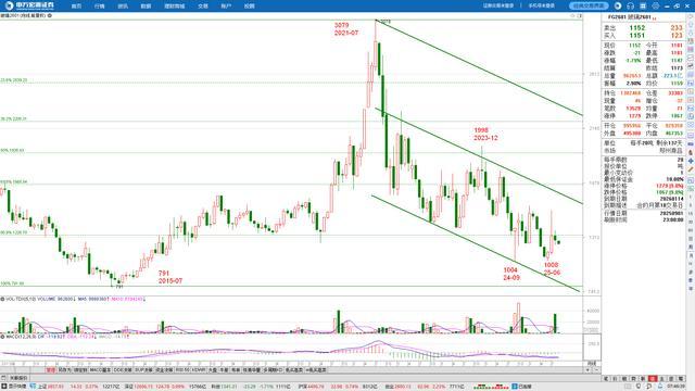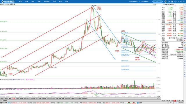 又是周末,全面捋一下玻璃的走势。 目前的原则观点是:玻璃01合约,依然处于2021年7月的中级顶部3079点以来的中级熊市之中。这个熊市是个先急跌、再缓跌的走势,可以认为它沿下面月线图中的三线平行等距的绿色下跌通道运行。 判断熊市结束的原则是:价格突破绿色下跌通道上轨。不突破绿色上轨的短线上涨,都可能只是熊市里的短线反弹浪。 图中的绿色黄金分割线,分割了前轮中级牛市的涨幅区间791~3079,根据波浪理论,它们可以预测3079以来的熊市涨跌进程,即预测熊市中的局部顶、底和最终底部。注意,对价格具有预测作用的,还有价格通道线本身。 图一 玻璃01合约月下趋势目标分析 波浪结构方面,目前的首选方案是:2023年12月的顶部1998以来的下跌,是熊市的第五浪下跌。根据更大结构的波浪分析,比如上市时间久远的棉花,可以发现本轮期货市场大多数品种持续四年多的中级熊市,是一个较大级别的调整浪的C浪下跌,与沪深A股大盘指数基本波浪同步,属于下跌推动浪性质,会是五浪下跌或等效结构(如九浪下跌)。因此,1998以来的跌势可能成为熊市的最后一个下跌浪。 再细看1998以来的下跌浪的内部结构,可以发现从1998到今年6月的底部1008点,是一个完整的五浪下跌结构。基于同样的技术理由,1008可能是1998以来下跌浪的终点。综合来看就是:1008点可能是四年多中级熊市的终点。 以上讨论的都是波浪结构分析得出的可能性,它不是做单的依据,做单必须依据波浪理论价格通道给出的确定性,尤其是短线和超短线价格通道给出的确定性。任何短线下跌趋势,包括熊市里的短线下跌推动浪和牛市里的短线调整浪,都必须做空;而任何短线上涨趋势,包括熊市里的短线反弹浪和牛市里的短线上涨推动浪,都必须做多。这是市场杠杆决定的,而逆势硬扛短线趋势大概率是条不归路。 图二、三 玻璃2601小时K线趋势目标分析 看上面小时K线图上的分析。为叙事方便,暂时将1008点底部作为熊市底部、牛市起点,但是这个结论需要最终得到熊市价格通道的认可。 牛市第一浪上涨,从1008点到1444点,在周线图(欠奉)上看是一个五浪上涨结构,符合上涨推动浪的预期。 1444点以来,是牛市的第二浪调整。图中的绿色黄金分割线,分割了第一浪的上涨空间,可以逐线预测第二浪调整的涨跌进程。 第二浪调整的第一子浪下跌,沿图中的蓝色下跌通道运行,从1444跌到了绿色61.8%黄金分割线1174点位置,实际最低1184点,误差罕见来到了两位数。第二子浪反弹,是一个三浪上涨结构,从1184点到绿色38.2%黄金分割线1277点,实际最高1270点。 1270点以来的第三子浪下跌,沿图中的绿色下跌通道运行。图中的蓝色黄金分割线,分割了第二子浪的反弹区间,它们可以逐线预测绿色下跌通道的涨跌进程。当然,前面的绿色黄金分割线,依然能以较大的步进逐线预测绿色通道的下跌进程。在下跌通道被突破之前,黄金分割线得陇望蜀的逐线预测游戏,可以一直玩下去! 按照此前的分析,图中的紫色下跌通道是绿色下跌通道内的第五浪下跌。由于周五日间的反弹刚好见顶绿色下跌通道上轨、夜盘的下跌又跌破了该反弹的红色上涨通道的下轨,因此此前的观点需做出调整,即紫色通道的五浪下跌结构,只是绿色通道内第五浪下跌的第一子浪下跌,目前价格处于第三子浪下跌中。第五浪的价格通道,就是图中的绿色下跌通道的上半幅。 最后,纯碱和焦煤的走势与玻璃几乎一样,可能不会再另外成文了,太耗脑力和时间了,而一篇长文分析的预期稿费,可能只是芭比馒头的一个肉包子,只有加上传播波浪理论的影响,才能得到付出与收获的平衡。鼓励波浪理论技术爱好者自己做出纯碱和焦煤的类似分析。 |