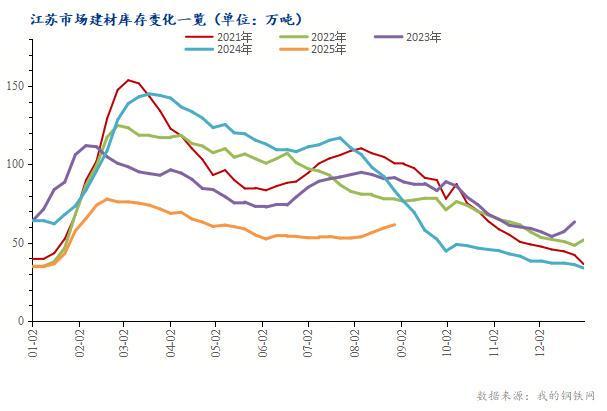 8月28日江苏市场建筑钢材市场库存较上周同期增加3.44%,较上月同期增加15.97%,年同比下降19.57%。