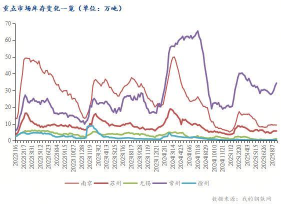 本周苏州、无锡库存稳中小降,南京、常州、徐州市场呈现小增走势。详细到几大市场近一周库存及到货等情况,笔者做出简单汇总。