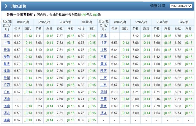 如今,新一轮油价恢复上涨,且,涨价预期超搁浅线,此次油价涨幅落地,国内汽柴油或将迎来今年第7次上涨!不过,距离2025年9月9日调价时间还有7个工作日,且,原油市场恢复下降,市场看跌情绪升温,倘若,接下来国际油价重心偏弱,个人预估,此次油价上涨或难以兑现!笔者也将持续跟踪市场的发展,对此,大家是如何看待的呢? 附:全国各省市加油站92,95号汽油以及0号柴油价格(仅供参考)