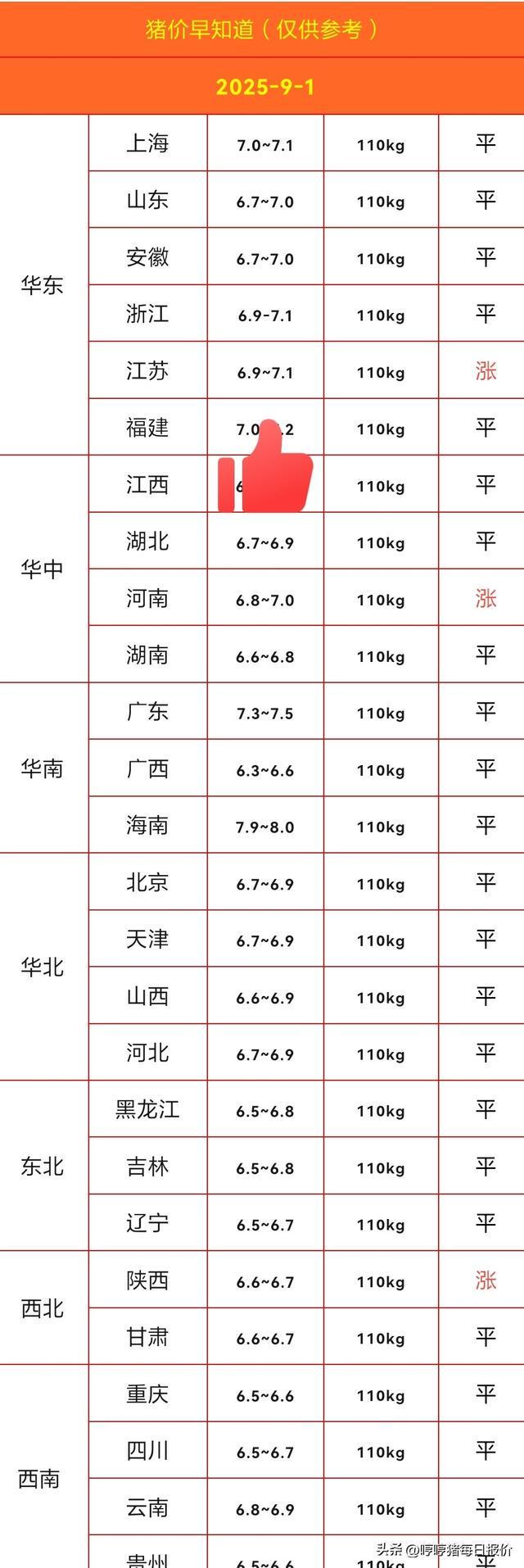 8月31日全国生猪成交均价14.01元,同比昨天上涨0.3元,最高价格广东成交15,2元,同比上涨0.2元,最低价格黑龙江13.42元,同比上涨0.2元,河南地区成交均价14.01元,同比上涨0.3元。肥猪行情根据市场和地区不同价格也有不同程度的涨幅,最高价格15.6元,最低 价格14.1元。山东价格14.1元,同比上涨0.2元,江苏、安徽地区都有0.1-0.2元的涨幅。 集团出栏数据:江苏温氏出栏减少3500头,安徽温氏出栏减少1700头,陕西地区(牧原、温氏、新希望等)出栏减少4300头。从出栏数据可以看出明显在控量拉涨行情,但是能不能持续上涨,还是要看市场的情绪和需求。 屠宰场31日计划增加明显,这主要原因就是学校开学,下游经销商开始备货,但是白条肉批发市场的销量没有明显增加。由于集团猪场的控量涨价,给很多屠宰场带来很大的收购难度,山东、河北、河南等大型屠宰场的屠宰计划都有不同程度的缺货。根据统计数据显示,目前屠宰场的开工率已经达到50%左右,充分说明大家都对下半年的行情有一个很好的预期。 9月1日生猪行情价格走势 根据目前生猪市场变化看,预计9月1日生猪行情依然会有不同程度的上涨,河南、山东、河北、江苏和广东地区上涨幅度依然不会低于0.2元。建议养殖户多关注集团猪场的出栏节奏的变化,合理调整自己的出栏节奏,同时一定要加快肥猪的出栏速度,切勿盲目压栏, |