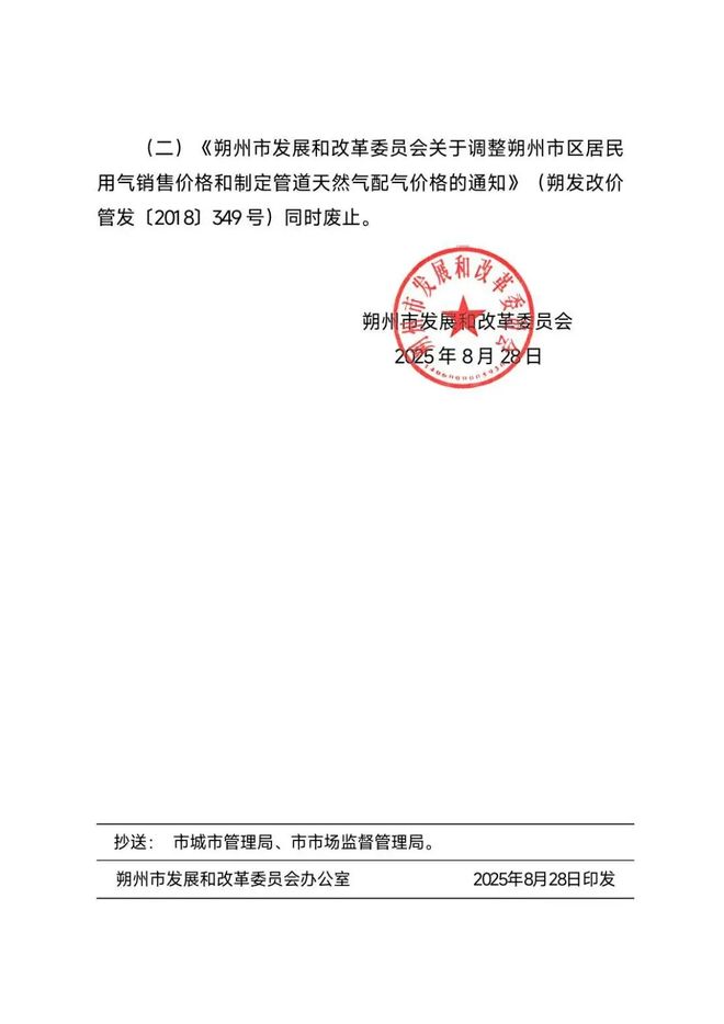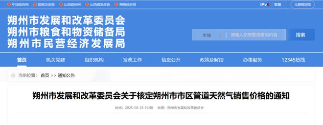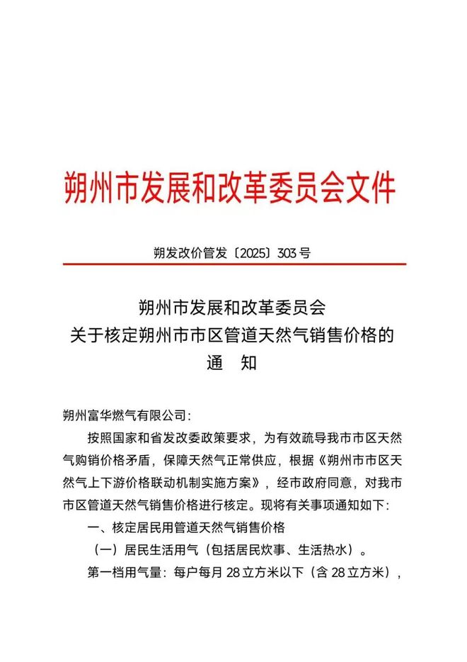 朔州市发展和改革委员会 关于核定朔州市市区管道天然气销售价格的通知