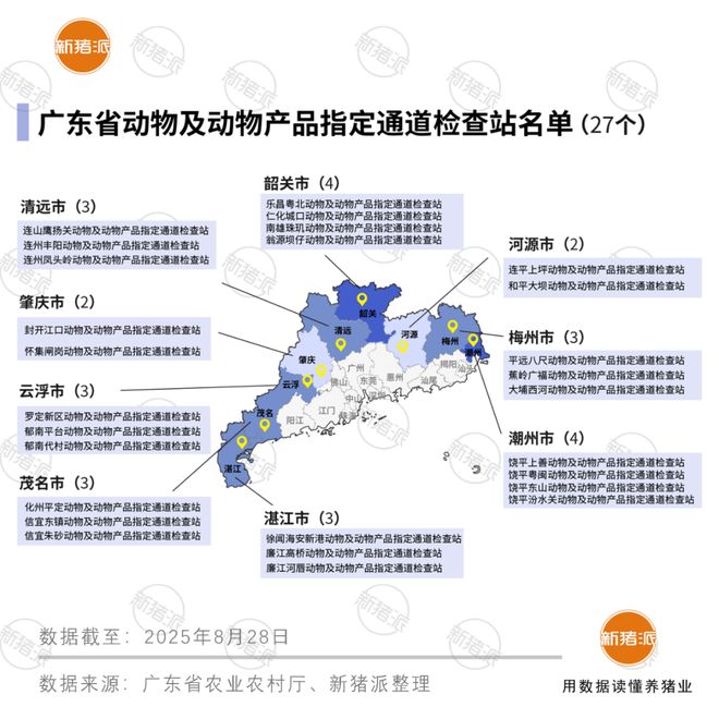 今日起生猪入粤只能走这27个检查站!广东猪价或大涨【勃林格特约·猪业视野】 近日,农业农村部出台了《道路运输动物指定通道检查站管理指引》(以下简称“新规”),旨在提升动物运输环节的疫病防控能力,降低动物疫病跨区域传播风险。这意味着,9月1日起,全国范围内规范各省动物运输指定通道检查站管理,生猪跨省调运必须在目的地省份的指定通道检查站接受检查。 分区防控,广东先行