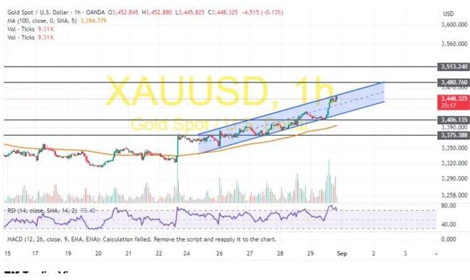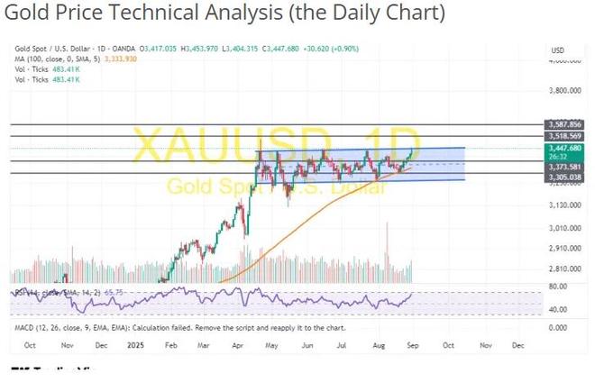 #黄金技术分析#24K99讯 周一(9月1日)亚市早盘,现货黄金在上一交易日大涨后基本持稳,目前金价位于3445美元/盎司附近。知名财经网站FXDailyReport分析师Nicholas Kitonyi周五撰文,对黄金后市走势进行分析。 黄金价格上周五飙升近1%,反映美国通胀数据增强了美联储可能在9月份降息的预期。 现货黄金上周五收盘大涨30.48美元,涨幅0.89%,报3447.26美元/盎司。 Kitonyi写道,上周五,金价从约3406美元/盎司的日低反弹至约3448美元/盎司。在60分钟的图表中,金价在一个上升通道内交易。 Kitonyi补充道,黄金价格继续在100小时移动平均线上方交易。因此,金价进入了14小时相对强弱指数(RSI)的超买水平。 美国上周五公布,7月个人消费支出(PCE)物价指数环比上升0.2%,同比增长2.6%,均符合预期。 High Ridge Futures金属交易主管David Meger说:“我们预期美联储今年全年将降息一次,或者可能降息两次,这对包括黄金和白银在内的大宗商品价格有支撑作用。” 交易商将美联储在9月降息25个基点的可能性上升到89%,高于数据公布前的85%。 两张图看黄金技术前景 就短期走势而言,Kitonyi表示,从技术面来看,根据60分钟走势图,黄金价格处于一个上升通道内。在进入超买状态后,14小时相对强弱指数(RSI)也支持看涨倾向。 从短期来看,黄金多头将寻求金价延续当前涨势,并升向3480美元/盎司,或者更高至3513美元/盎司。 黄金空头则将寻求金价在回落至3406美元/盎司左右、或更低至3375美元/盎司时获利了结。 (现货黄金60分钟图 来源:FXDailyReport) Kitonyi指出,在日线图上,黄金价格在横盘通道内交易。然而,14日RSI最近飙升,接近超买水平。 因此,从中长期来看,黄金多头将寻求金价延续当前反弹走势,并涨向3518美元/盎司,或更高至3587美元/盎司。 另一方面,黄金空头将把长期获利目标定在3373美元/盎司左右,或更低的3305美元/盎司。 (现货黄金日线图 来源:FXDailyReport) 北京时间08:40,现货黄金报3445.12美元/盎司。 |