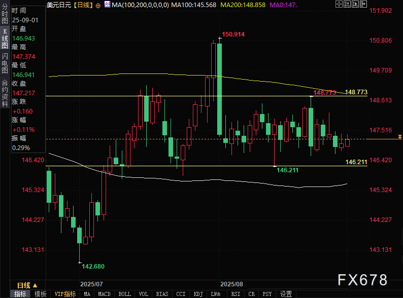 周一(9月1日)亚市早盘时段,美元兑日元震荡走强,最高触及147.37附近,而后回落,现交投于147.05附近。由于日本通胀压力降温削弱了市场对日本央行年内再次加息的预期。市场正等待周二晚些时候公布的美国ISM制造业PMI报告,以及周五公布的备受瞩目的美国非农就业数据。美元指数持稳于97.85附近,陷入窄幅盘整。 ![]() 8月份以东京CPI衡量的日本通胀率保持温和增长。8月整体CPI同比上涨2.5%,低于7月的2.9%。剔除生鲜食品的核心CPI同比上涨2.5%,符合预期,但低于前值2.9%。通胀降温迹象促使交易员削减对日本央行加息的押注,这可能短期内令日元承压。 美元方面,上周五公布的美国PCE报告显示,7月通胀保持稳定但仍高于美联储2%的目标。PCE数据公布后,市场加大了对美联储9月降息的押注。这可能会限制美元兑日元的上涨空间。 市场等待从周五公布的美国就业报告中寻找更多线索,8月非农数据可能影响美联储决策,市场预计8月新增就业人数为7.8万人,失业率预计升至4.3%。 日本财务省数据显示,4-6月企业设备投资同比增长7.6%,增速较上季度加快,显示国内需求支撑经济复苏。但美国关税对制造业(尤其汽车业)利润造成严重冲击,导致企业经常利润骤降11.5%,可能影响投资前景。 尽管资本支出强劲支持央行加息预期,但关税引发的出口下滑和生产萎缩已初步显现,日美贸易协定执行时间仍存变数。该数据将用于修正9月8日公布的GDP数值,但预计不会大幅调整初值。 技术分析 短期内,美元兑日元可能继续在146-149的宽幅区间内震荡。 上行方面,上方近期高点148.78和200日移动平均线(MA)(148.86)附近构成阻力区;下行方面,8月低点146.21构成初步支撑位,若有效跌破,可下探100日移动平均线(145.57)支撑。 ![]() 北京时间10:25,美元兑日元交投于147.06/07。 |