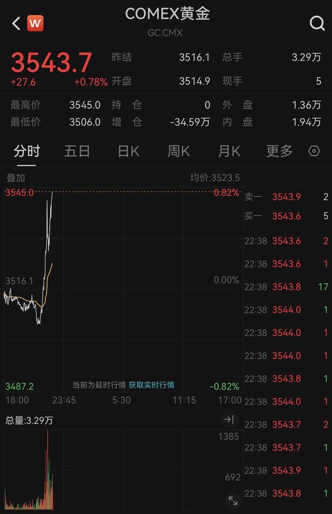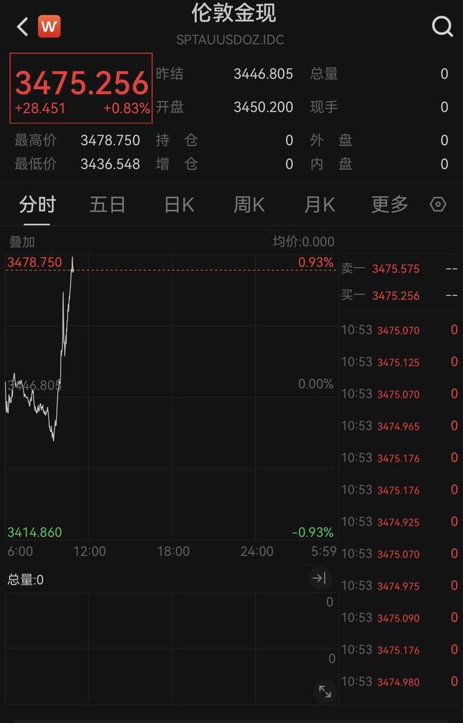 9月1日,国际金价上涨显著,盘中,现货黄金突破3470美元/盎司,创4月22日以来新高,COMEX黄金主力合约同步上涨。截至10时53分,现货黄金报3475.25美元/盎司,COMEX黄金主力合约报3543.7美元/盎司。 紧跟国际市场波动,国内金饰价格应声上涨,多个品牌金饰价格集体重回千元。截至发稿,周大福金饰报价1015元/克,单日上涨0.59%;老凤祥金饰报价1025元/克,单日上涨0.89%;周六福金饰报价1000元/克,单日上涨0.91%;老庙黄金金饰报价1015元/克,单日上涨0.2%。 A股市场上黄金概念股亦同步异动,截至10时37分,Wind显示黄金珠宝指数大涨4.77%,西部黄金(601069.SH)、豫光金铅(600531.SH)涨超9%,湖南黄金(002155.SZ)、中金黄金(600489.SH)、山金国际(000975.SZ)等涨超6%。