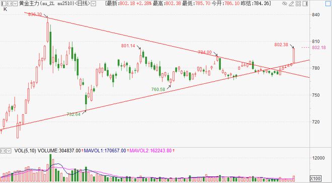 (数据来源:据博易大师软件统计) 尽管历史数据跌多涨少,但是今年9月,有一个影响金价走势的重要因素却必须引起关注,那就是美联储是否会宣布美元降息。 美元降息概率大增 9月金价会出现小概率走势? 黄金作为兼具金融属性、货币属性和避险属性的特殊资产,其价格核心受美元走势与利率变动影响。一般来说,黄金与美元呈 “跷跷板效应”,美元走弱则黄金的吸引力提升;利率方面,低利率会降低持有黄金的机会成本,推升需求,高利率则反之。今年美元指数持续走弱为黄金提供支撑,当前市场聚焦9月美联储动向——CME FedWatch工具显示,9月降息已是大概率事件了。 而美联储主席鲍威尔近期在杰克逊霍尔全球央行年会上也表态,通过突出就业风险、重构政策调整逻辑、弱化通胀制约,为9月降息铺平道路。 虽然美元降息的概率越来越大,而从技术走势上观察,黄金价格走势却出现了一些不确定因素。 今年1月以来,黄金价格强势拉升,国际金价一举突破3000美元历史高位,上海黄金现货在5月后便进入760元/克—780元/克的高位窄幅震荡区间。从技术面看,黄金价格呈现三角收敛形态,正等待重大方向选择,而 9月美联储议息会议无疑将成为关键推手。 从黄金期货主力合约走势图中可注意到,美联储公布利率的时间点是9月18日,三角收敛形态技术趋势指标线形成的时间节点是9月24日,仅相隔三个交易日,尽管市场普遍预期降息对黄金构成利多,但当前高位盘整的三角收敛技术形态,在传统技术分析理论之中,却存在假突破的可能性,因此交易者需警惕 “利多出尽”风险——即可能出现向上假突破后再度下行的走势。
