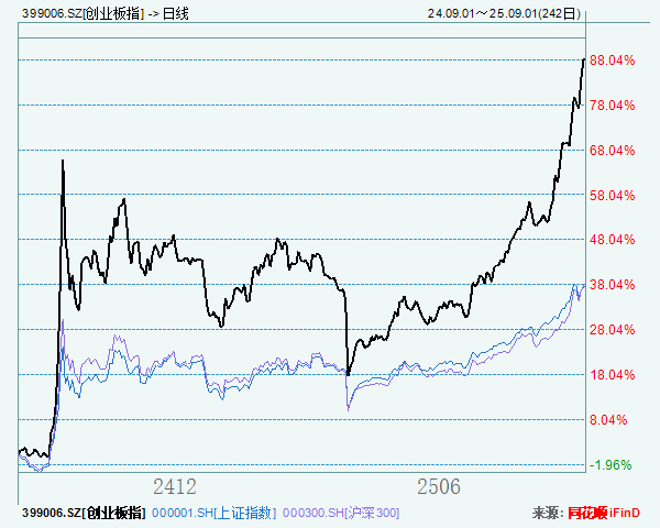 ![]() 今天A股行情依旧不错,我们继续聊聊创业板。临近收盘,上证指数涨幅0.42%,创业板涨超2 %,站稳2900点,盘中一度突破2950点。 近一年创业板跑赢大盘50%,支撑何在? 我们前面发文解读过,A股近期走高主要基于宏观和产业政策持续利好、流动性仍旧宽松、部分产业基本面复苏显著。 我们复盘最近一年创业板指的涨幅,已经接近90%,跑赢大盘50%。前期我们也给大家分享过一些研报数据,上半年创指基金是各类主流基金里面收益最好的一类。 ![]() 那为什么创指表现如此优越?我们认为主要源于三方面 一是,近期美联储转鸽,市场认为9月降息概率大幅增加,国内利率也一直处于下行通道,市场资金流入A股的热情也很高。流动性宽松,成长股更受益,而创业板指是A股最具代表性的成长风格宽基指数之一(甚至没有之一); 我们在前期发文也强调过:流动性越泛滥,成长股弹性越高。 二是政策助力,赛道景气度持续高位。去年924以来政策持续利好,创业板权重板块如新能源、生物医药、AI、半导体等,均处于产业上行周期,业绩确定性较高; 三是情绪与叙事共振。国产替代、AI自主化、反内卷等主题持续发酵,带动科技龙头领涨,创业板成为重要情绪出口。 再有一点,创业板这个指数本身覆盖多个新兴产业,哪怕行业轮动也能持续受益,不易踏空。 现在入场是不是晚了? 对于后市行情,我们认为仍旧是有空间的。有一个指标是巴菲特指标,以股票市场的总市值去除以GDP,得出的结果如果 1、如果数字<75%-80%,说明市场可能被低估,投资者可以用相对“便宜”的价格购买到代表国家经济的企业资产。 2、如果指标比率在90% - 115%左右,市场估值处于合理区间。 3、指标比率 > 120%,市场可能被高估,存在泡沫风险。 那现在,这个数字是多少呢? 截至到上周收盘,A股总市值113.52万亿,中国2024年的总GDP约135万亿,所以这个比例大概在84%左右。按照2025年GDP增速5%左右算的话,如果A股市值不增加,巴菲特指标的水位还会再降低。 所以目前看,整个市场我们还没有看到大幅的泡沫化,也是我们看中期或者长期,A股市场还是有一定空间的原因。当然也是基于前面提到的政策、产业、资金面情况的大前提下。 我们再来看一下创业板的估值。 截至本周开盘前,PE倍数41.61x,近10年分位值39.72%;估值处于偏低区域,近5年分位值55.98%,也显著低于其他宽基如沪深300、中证500和中证1000等。 ![]() 也就是说,拉长时间看,创指尚未泡沫化,投资者或仍可布局。不过有两点需要提示: 1、正如我们一直说的,建议不要梭哈,分批买入。牛市多急跌,本轮自4月以来连涨时间较长,若后续有回撤,可以在市场回撤时增加布局。 2、可以适当设置止盈线,同时若入场时机并不算太早,止盈线应当设置得稍低一些。 对创业板感兴趣的投资者,可以关注天弘创业板ETF联接(A:001592;C:001593),上支付宝、天天基金、京东金融搜索“天弘基金”即可了解。 风险提示:观点仅供参考,不构成投资建议,市场有风险,投资需谨慎。投资者在购买基金前应仔细阅读基金招募说明书与基金合同,请根据自身投资目的、投资期限、投资经验等因素充分考虑自身的风险承受能力,在了解产品情况及销售适当性意见的基础上,理性判断并谨慎做出投资决策。指数基金存在跟踪误差,指数业绩表现不代表具体产品业绩表现。定投非储蓄,不能规避基金固有风险,不能保证投资者获得收益。 |