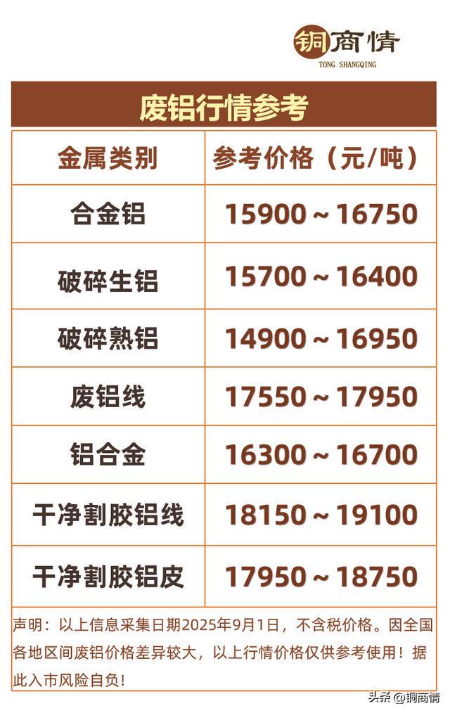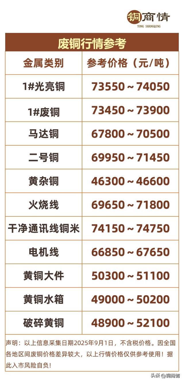 9月1日,国内废铜市场延续上涨态势,四川地区1#光亮铜线单日上涨300元/吨,报价区间收窄至73450-73850元/吨,1#废铜同步跟涨至73700-74100元/吨。国内8月制造业PMI、非制造业商务活动指数及综合PMI均回升,显示经济景气保持扩张;7月工业企业利润降幅收窄,政策稳产能效果显现,下游金属消费需求获支撑。 机构分析指出,中美经济企稳叠加美元中期偏空预期,为铜价提供上行动力,但全球现货供应宽松及中国部分指标偏弱限制涨幅。国际方面,美国二季度GDP修正值年化增长3.3%,超市场预期,企业投资、消费者支出及出口表现强劲,缓解经济放缓担忧;但7月核心PCE物价指数同比涨2.9%,创近期新高,通胀压力仍存。 市场普遍预期美联储9月将启动降息,但幅度存分歧,本周五(2025年9月5日)公布的非农就业数据或成关键变量。当前铜价在宏观预期与供需基本面博弈中震荡上行,后续走势需密切关注政策动向及数据验证。 废旧有色金属今日最新行情: 注:以上信息仅供参考使用,不作为其他用途,据此入市,风险自担。 |