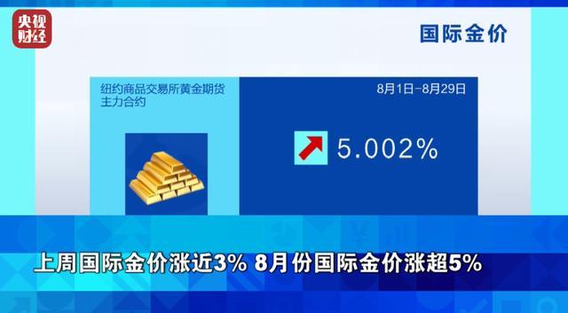 上周国际金价涨近3% 9月1日,国际现货黄金高开,一度向上触及3450美元/盎司。 上周,市场担忧美联储独立性受到挑战,投资者避险情绪升温,国际金价累计上涨2.86%。整个8月,国际金价累计涨幅超过5%,创下今年4月以来的最佳单月表现。