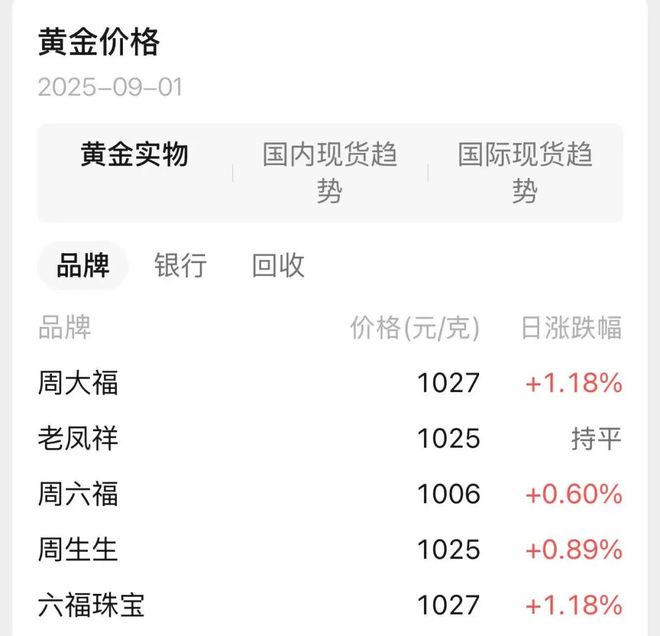截止目前,国际黄金价格突破3470美元/盎司,各大品牌实物黄金都突破1000元/克。