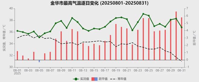 近期美联储的讲话及美国经济数据不断强化美联储9月的降息预期,为金价的上涨提供支撑。另外,特朗普与美联储官员的争端也进一步驱使避险资金从美元转向黄金,从而推升金价。 据最新的CME“美联储观察”数据:美联储9月维持利率不变的概率为12.6%,降息25个基点的概率为87.4%。美联储10月维持利率不变的概率为5.6%,累计降息25个基点的概率为45.8%,累计降息50个基点的概率为48.6%。 在此背景下,华尔街齐声看好金价行情。 在上周Kitco新闻的周度黄金调查中,华尔街分析师展现出空前的乐观态度,14位参与者中86%预计下周金价将继续上涨,无一人看跌,剩余14%认为将横盘整理。 资产策略国际公司总裁里奇·切坎觉得黄金还会上涨,其认为市场对美联储9月降息超过87%的预期将推动金价续升,尤其在突破3400美元后,尽管可能有获利回吐,但特朗普与美联储官员的争端将进一步驱使资金从美元转向黄金作为避险资产。 本周,美国就业数据将是金价能否突破历史高点的重要参考。周二的8月ISM制造业PMI、周三的JOLTS职位空缺、周四的ADP就业数据、每周失业救济申请以及ISM服务业PMI,将逐一登场,而周五的8月非农就业报告将成为重中之重。 金华近日天气预报 回顾8月 高温全勤打卡 金华国家站高温日达31天 其中今年以来最高气温为39.6℃ (出现在8月24日) 看着就热