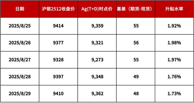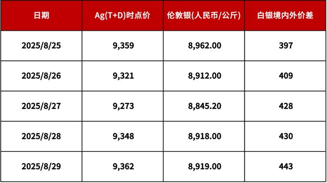 白银境内外价差情况 (截至2025年8月29日) 延期交割情况
