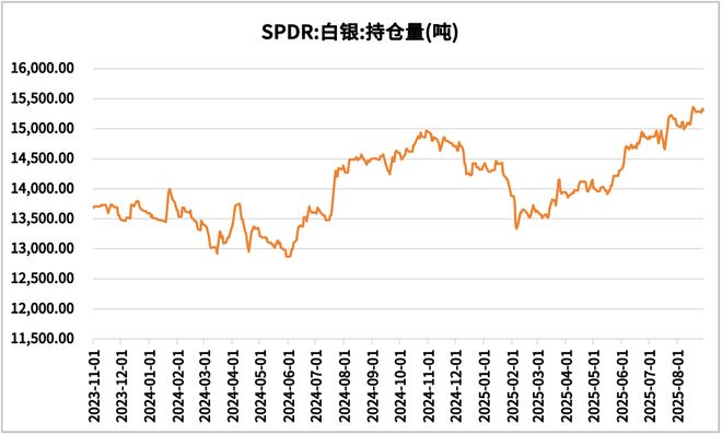 iShares白银ETF(SLV)持仓情况 截至2025/08/29iShares白银ETF白银持有量为15310.00吨,上周累计净增持21.18吨。