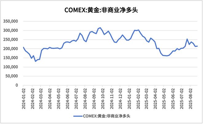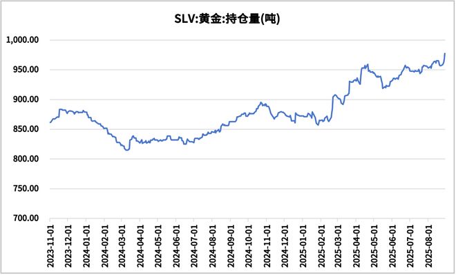2025/08/25-2025/08/29 数据来源:同花顺 上周,现货黄金开盘在3368.96美元/盎司,最高触及3453.63美元/盎司。周五现货黄金收盘报3447.57美元/盎司,周涨幅2.31%。上周现货白银开盘在38.918美元/盎司,最高触及39.967美元/盎司,周五收盘报39.669美元/盎司,周涨幅2.24%。上周,受市场对美联储独立性担忧加剧影响,现货黄金的避险需求增强,叠加法国政局动荡、俄乌会谈预期降温,国际金价连续多个交易日走高。周五,由于美国通胀数据基本符合预期,强化了美联储下月可能降息的预期,国际金价一度站上3450美元关口,月线收涨4.7%,国际银价收于39.7美元/盎司左右,月线收涨8.3%。 本周,重点关注美国8月非农就业数据、美国8月PMI数据、库克与特朗普诉讼情况。预计本周黄金价格波动率上行,建议轻仓参与、灵活进出。 境外ETF持仓 SPDR黄金ETF持仓情况 截至2025/08/29最大的黄金上市交易基金(ETF)SPDRGoldTrust持仓量为977.68吨,上周累计净增持20.91吨。