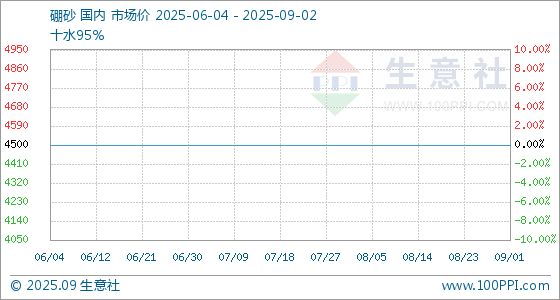 9月2日,生意社硼砂基准价为4500.00元/吨,与本月初持平。