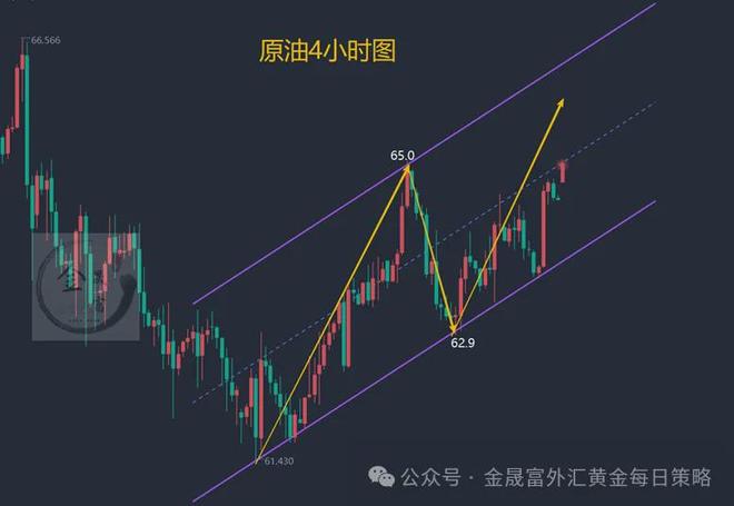上图为原油4小时级别k线图,原油从4小时图级别看,K线连续收阴止步后,形成一个窄幅区间的底部,油价逐步上穿小级别均线,整体仍被压制,中期主观趋势向下。从动能看,MACD指标在零轴下方形成金叉,预示下行动能逐步减弱信号出现,预计原油中期走势将维持下行概率较大。原油短线1小时走势保持区间震荡整理格局,区间波幅在65.70-63.00之间。早盘油价自区间高位缓慢回落,动能上,MACD指标快慢线下穿零轴并张口向下,预示空头动能将逐步增强。预计日内原油继续是震荡行情,但注意前面第一触及65阻力有下跌,不过没跌破日线周期MA10位置,因此走势并不弱,当前收口走平状态,有概率向上冲一冲,关注66.0/66.5阻力分批布空,本周可以注意这个机会,短线回踩64.00做多,止损63.50,目标看65.50。 #日内策略:早盘65.0直接空,止损65.7,目标64.0! 回踩64.0多,止损63.3,目标65.0-66.0! 【思路仅供参考,行情瞬息万变,切勿盲目跟风】 |