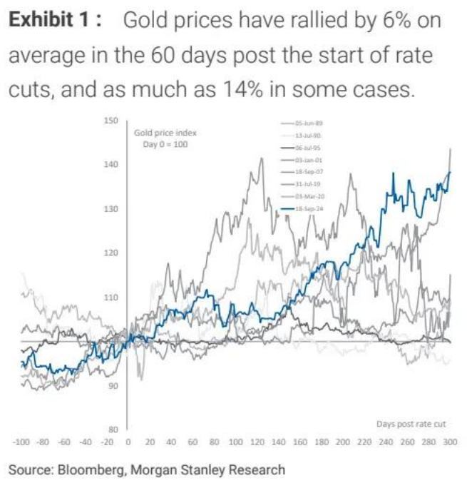 来源:智通财经APP 摩根士丹利最新研报指出,贵金属市场正迎来多重利好驱动的上行周期,黄金与白银价格有望在美联储降息周期及宏观环境变化中走出分化行情。据研报分析,历史数据显示美联储降息后贵金属通常呈现显著上涨——黄金在降息后60天内平均涨幅达6%(最高达14%),白银同期平均上涨4%。这一规律为当前市场提供了重要参考。
