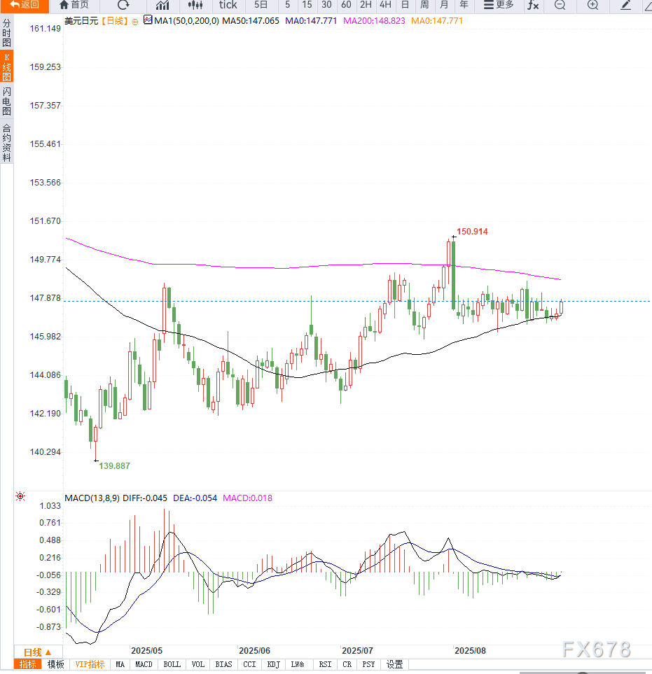 周二亚洲盘面,日元连续第三日走软。美元兑日元升至147.85附近,创下近一周新高。 ![]() 这种BoJ偏鹰与美联储偏鸽的政策分化,有助于限制日元进一步贬值。 在此背景下,美国国内政治与美联储独立性问题也对美元构成压力。特朗普撤换美联储理事Lisa Cook的举动引发央行自主性担忧,而财政部长Bessent则辩护称相关指控需要调查。 与此同时,特朗普持续批评鲍威尔未能更激进地降息,使市场对美联储未来政策路径更加不安。 数据层面,本周美国宏观数据密集来袭,包括周二的ISM制造业PMI、周三的JOLTS职位空缺、周四的ADP就业与ISM服务业PMI,以及周五的非农就业报告。这些数据预计将对美元和美元兑日元走势产生显著影响。 技术面显示,美元兑日元过去三日的反弹确认了146.70区域的支撑作用。若跌破该点位,可能回落至146.20甚至146.00关口。 上行方面,148.00关口为关键阻力,也是过去数周震荡区间的上沿。若突破,可能触发空头回补行情,目标指向148.75-148.80区域,靠近200日均线。整体来看,美元兑日元短线处于区间震荡,148关口将决定多空力量的进一步平衡。 ![]() |