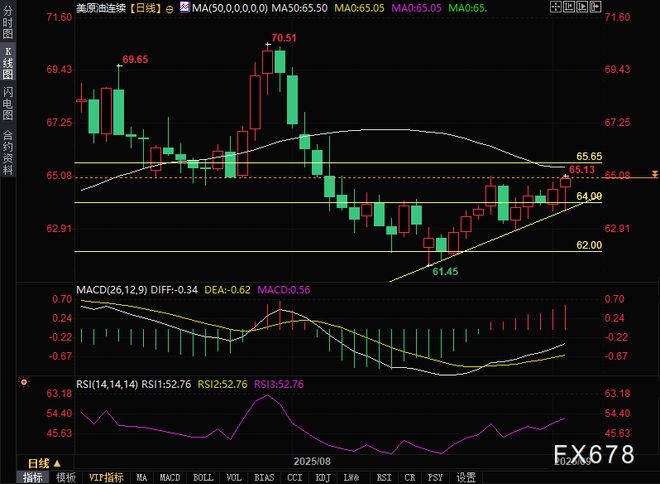 影响因素分析 近期乌克兰无人机袭击针对俄罗斯能源设施,导致至少占俄石油加工能力17%(即每日110万桶)的设施停产。这引发市场对全球第二大石油出口国俄罗斯供应中断的担忧,成为助推原油价格上涨的关键因素,为后续涨幅提供支撑。 然而投资者可能等待9月7日石油输出国组织及其盟友(OPEC+)会议,以获取该组织进一步增产的线索。结合新月初重要美国宏观经济数据的发布,这些事件将为原油价格提供重要推动力,并帮助确定下一步走势方向。 美元指数疲软,此前曾连续五个交易日下跌,接近五周低点,这使得以其他货币购买原油的成本下降,也为油价提供了支撑。 技术分析 从技术面看,油价多次突破65.00关口,若能站稳65.00关口上方,此位置将成为有力支撑位,成为油价上涨的新起点。 上行方面,50日移动平均线(MA)(65.50)附近可能成为即时阻力。鉴于日线图震荡指标刚获得正向动能以及上行趋势线助力,后续买盘料将为进一步上涨打开空间。原油价格可能首先上攻65.65美元屏障,继而尝试收复66.00关口并测试66.20-66.25阻力区域。 下行方面,64.00整数关口可能提供初步支撑,其后是63.70区域。若有效跌破该水平,可能拖动油价下探63.00标记位,失守后下行轨迹或进一步延伸至62.60-62.50区域,最终指向62.00心理关口,该水位应视为关键枢轴点——若被突破,将被视为空头的新触发因素。