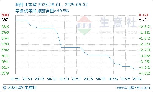 生意社09月02日讯 据生意社商品分析系统显示,8月份国内顺酐行情持续下行。截止9月2日顺酐报盘均价为5605元/吨(均含税),较8月1日的5862.50元/吨,下跌4.39%。 供应方面:8月中上旬顺酐行情继续回落,主要受东北地区有商品量外售,市场供应增量增加,市场操作谨慎,加之烟台竞拍价格持续回落,工厂执行价格跟跌;8月下旬万华烟台场次竞拍暂停,华东场次先涨后跌,顺酐主力工厂执行价格跟随涨跌。目前湖北中能装置液酐外售,9月初山东区域共计16万吨装置计划检修。截止到9月2日,山东地区顺酐市场固酐出厂价5300元/吨附近运行,液酐出厂价4650元/吨附近运行。 上游方面:8月山东地区纯苯市场价格先涨后跌。上半月市场价格上涨为主,下半月市场价格下跌为主。8月1日价格在6075.33元/吨;9月2日价格在5975.33元/吨,较月初下跌1.65%。 8月份国内正丁烷市场价格震荡下行,截止到9月2日山东价格在4510元/吨左右。 下游方面:8月份不饱和树脂行情整理为主,不饱和树脂下游需求有限,上游原料行情弱势,对不饱和树脂支撑有限,市场行情弱势整理。 生意社顺酐产品分析师认为,近期顺酐上游正丁烷行情回落,顺酐成本支撑有限;加之主力下游不饱和树脂行情弱势,对顺酐采购有限;但近期山东及华北顺酐企业有检修计划,对顺酐行情有一定提振作用,目前部分厂家有限签操作,预计近期顺酐市场或将小幅上涨。 【大宗商品公式定价原理】 生意社基准价是基于价格大数据与生意社价格模型产生的交易指导价,又称生意社价格。可用于确定以下两种需求的交易结算价: |