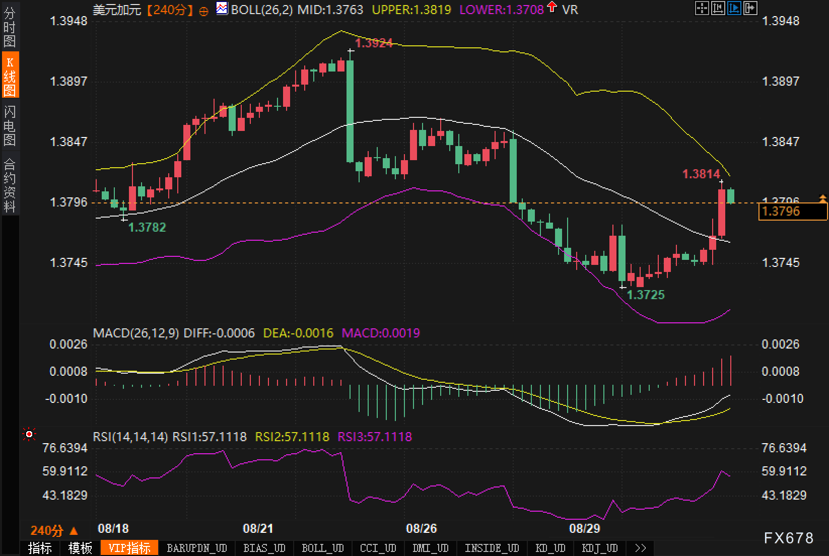 周二(9月2日),加元连续第二日走软;美元/加元自近四周低位回升,北美时段交投于1.3800附近。美元指数(DXY)同步自阶段低位反弹至98.50附近、日内一度上行约0.85%。驱动层面,英国国债领衔的全球债券抛售带动美债收益率抬升。 ![]() 债市成为主线:英国金边债收益率跳升外溢至北美,触发利差—避险双通道的美元需求回补,美元/加元顺势回升。美国假期后流动性恢复,美元买盘更集中于利率敏感的时段。数据端,稍后将公布美国ISM制造业PMI料自48.0微升至49.0,仍处荣枯线下方,市场将重点拆解就业、订单与支付价格分项,以甄别需求与通胀粘性。 展望本周后段,周五的“双就业”将主导节奏:美国非农就业(NFP)被视作9月议息的重要前瞻线索,市场据此评估25bp降息是否为基准路径、抑或存在更大幅度动作的议价空间;同期加拿大8月就业亦将影响9月17日议息的风险平衡。此前二季度GDP意外收缩令市场重估进一步降息的可能性,一旦就业边际转弱,降息预期或被再度强化,从而对加元构成额外拖累。总体而言,利率预期差、增长相对差与风险偏好三者仍是短线定价核心。 技术面: 240分钟K线图显示,美元/加元自1.3725附近的布林带下沿企稳反弹,当前价格重返布林中轨1.3763之上并逼近上轨1.3819。布林带形态前期经历收敛—走平,近期随价格上冲出现再开口迹象。MACD中,DIFF -0.0006已上穿DEA -0.0016,柱状图转正至0.0019,构成温和的金叉信号,动能由负转正但幅度尚浅,指向技术性反弹主导,而非趋势性反转。RSI(14)位于57.11附近,上破中轴50后仍远未触及超买,空间尚存但需要量能(趋势延续)确认。 ![]() 市场情绪观察 从跨资产反馈看,债券抛售—收益率上行是当日主导叙事,多头市场情绪集中在美元而非周期商品或能源货币。外汇盘面呈现典型的“强美元、弱高贝塔货币”结构,资金流倾向回补美元空头与对冲周五数据风险,波动率实现小幅抬升但仍低于事件型高位区。 情绪层面,盘中无极端恐慌性抛售痕迹,更多体现为风险中性偏谨慎:交易员在就业与通胀线索未明之前,倾向以均值回归+轻仓动量的方式参与反弹,回避单边押注。 |