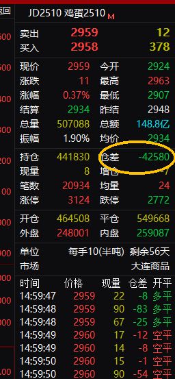 另外就是鸡蛋的跌幅够深,具备超跌反弹的条件。 还有就是鸡蛋的持仓量较大,特别是主力合约2510,2025年8月28号,周四当天收盘,2510合约持仓量达到了历史上的52.8万。 今天2510合约大幅度减仓4万多手,也是上涨的原因之一。