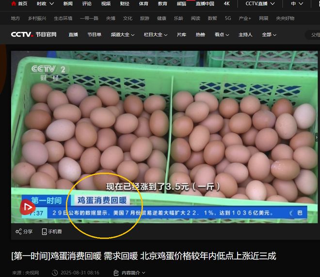 在流畅的下跌中,终于有一个K收在5均线之上。 有哪些风吹到了鸡蛋,让鸡蛋开始有点回暖的迹象呢? 我总结了有三条: 1.央视周末的报道 2.鸡蛋超跌,具备反弹条件 3.空仓平仓 首先是我周日(8月31号)看到了一篇央视的报道。