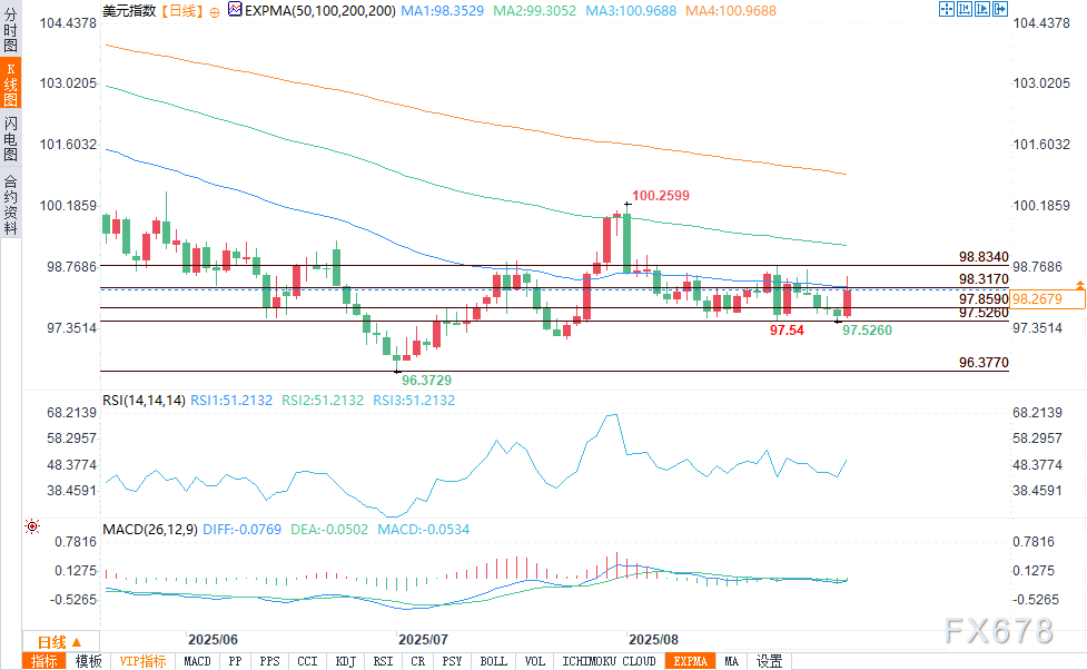 周二(9月2日),受美国国债收益率飙升以及全球金融市场对“美国法院裁决特朗普时期多数关税违宪”的反应影响,美元指数(DXY)大幅上涨并突破关键技术位。该指数突破位于98.000的50日移动平均线(目前已成为短期支撑位),盘中最高触及98.5895。 ![]() 美元指数最初的上涨行情,似乎是由该指数上破50日移动平均线后引发的大规模空头回补推动。目前,98.000已确立为支撑位,次要支撑位分别位于61.8%斐波那契回撤位(97.859)以及前期双底低点(97.536和97.556)。 阻力位方面,50%斐波那契回撤位98.317重新成为阻力,其次是周二盘中高点98.595以及8月22日的波动高点98.834。这一走势凸显出美元看涨动能重新积聚,不过盘中波动性仍处于高位。 ![]() 关税不确定性引发国债收益率飙升 美元大幅上涨的同时,美国国债收益率也出现显著攀升。30年期国债收益率突破4.97%,创下7月底以来的最高水平;10年期国债收益率触及4.279%;2年期国债收益率则升至3.656%。此前,美国联邦上诉法院裁定特朗普政府实施的全球多数关税违宪,理由是税收权归属于美国国会。该裁决引发了财政不确定性,增加了关税退款及美国国债发行规模扩大的可能性。 市场将“2025年关税收入或减少1720亿美元”视为对赤字削减工作的打击,进一步对收益率曲线长端施加压力。尽管预计该裁决将提交至最高法院审理,但交易员已开始将主权风险上升的因素纳入定价。 欧洲债券与全球风险情绪 欧洲各国债券收益率同样大幅上涨:受政治不稳定及预算担忧影响,法国30年期国债收益率创下16年来新高;英国方面,类似担忧推动30年期英国国债收益率升至1998年以来的最高水平。此外,由于外界对英国首相基尔·斯塔默(Keir Starmer)领导下的新经济团队可信度提出质疑,英镑汇率下跌逾1%。 这场范围更广的债券抛售潮对全球股市构成压力,道琼斯工业平均指数盘中下跌逾500点。与此同时,黄金与美元同步上涨,这一现象凸显出市场失衡——交易员既寻求硬资产避险,也选择持有现金避险。 市场展望:偏向看涨,但需保持谨慎 美元指数上破50日移动平均线,标志着短期市场情绪发生转变。交易员将密切关注周五公布的非农就业数据,以获取有关美联储政策走向的更多线索。 随着市场波动性上升,且收益率面临突破新高的压力,美元指数下一步可能测试98.834关口。若能持续站稳98.317上方,或有望进一步向99.000发起冲击;反之,若无法守住98.000支撑位,则可能意味着市场重新进入盘整阶段。 |