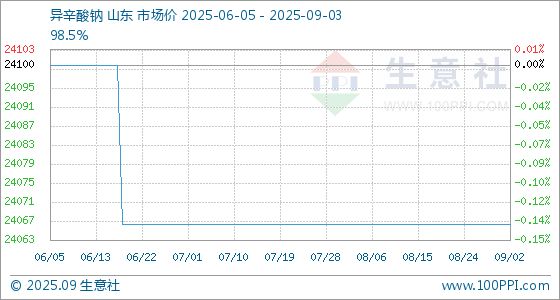9月3日,生意社异辛酸钠基准价为24066.67元/吨,与本月初持平。