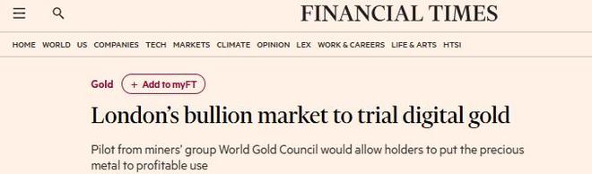 24K99讯 英国《金融时报》周三(9月3日)最新报道称,世界黄金协会(World Gold Council)正在寻求推出一种数字形式的黄金,此举可能通过创造一种新的黄金交易、结算和抵押方式,彻底改变伦敦9000亿美元的黄金实物市场。 (截图来源:英国《金融时报》) 代表黄金矿业的行业机构世界黄金协会首席执行官戴维·泰特(David Tait)在接受英国《金融时报》采访时表示,这种新形式将使“黄金作为抵押品,首次在黄金生态系统中以数字方式传递”成为可能。 尽管许多投资者正是因为黄金的实物性质和缺乏交易对手风险而看重黄金,将其视为避险资产,但泰特认为,黄金必须数字化,以扩大其市场覆盖范围。 曾担任银行家的泰特说道:“我们正在努力实现黄金数字层面的标准化,以便其他市场使用的各种金融产品未来也能在黄金市场使用。” 他补充道:“我的目标是让世界各地的许多资产管理者突然以不同的眼光看待它。” 本周,黄金价格创下历史新高,过去三年翻了一番。 现货黄金周二收盘暴涨57.04美元,涨幅1.64%,报3533.35美元/盎司。 周三亚市早盘,现货黄金价格进一步升至3546.98美元/盎司,刷新纪录高位。 然而,尽管金价上涨,但对于大多数银行和其他投资者而言,黄金在其资产负债表上仍然是一种静态的、不产生收益的资产。 泰特认为,如果黄金数字化,它可以用来满足追加保证金要求,并作为抵押品,从而实现盈利。 泰特表示:“从抵押品的角度来看,银行将获得丰厚利润,因为他们有机会将资产负债表上的黄金用作抵押品。” 这个名为“黄金权益池”(PGI)的新数字单元将允许银行和投资者买卖独立账户中持有的实物黄金的分散所有权。它将于明年第一季度在伦敦与商业参与者进行试运行。 |