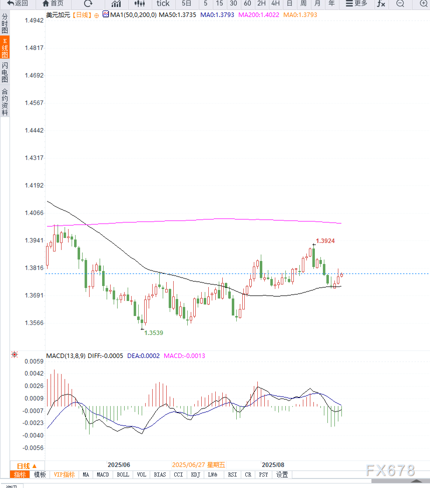周三欧洲早盘,USD/CAD维持在1.3795的高位震荡,加元持续承压。市场关注的焦点在于加拿大央行(BoC)是否会在9月会议上实施降息。数据显示,加拿大二季度经济收缩幅度大于预期,令政策宽松预期进一步升温。 ![]() 另一方面,全球债市的抛售带动避险情绪升温。随着主要经济体债务负担不断加大,美元的避险价值获得市场青睐。 “当下市场的风险情绪更多是源于债券市场的动荡。”——State Street Markets股票研究主管 Marija Veitmane 值得注意的是,国际原油价格近期回升,这可能为商品货币加元提供一定支撑。作为美国最大的原油供应国,加拿大在油价上涨时往往能从中受益,从而对冲部分货币贬值压力。 从日线图来看,USD/CAD保持在50日均线(1.3700)之上运行,显示多头趋势延续。短期支撑位集中在1.3740与1.3700,若跌破该区间,可能引发部分获利回吐,进一步测试1.3630水平。 上方阻力位则在1.3820与1.3860,一旦突破,汇价有望向1.3900心理关口靠近。RSI指标目前处于60上方,显示买盘动能仍占优,但短期或有超买压力。 ![]() 整体来看,基本面与技术面均偏向美元走强。加拿大央行的降息预期加大了加元贬值风险,而债市风险与避险资金流进一步推升美元。短期若油价持续上涨,可能削弱美元的上行动力,但若突破1.3820关口,USD/CAD有望向1.39区域延伸。 |