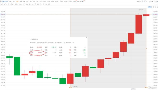 今天,黄金价格再度刷新纪录。 现货黄金盘中一度触及3547美元/盎司,较前一日再创新高。 近11个交易日,金价已经累计上涨超6.6%,避险资产的吸引力凸显。
