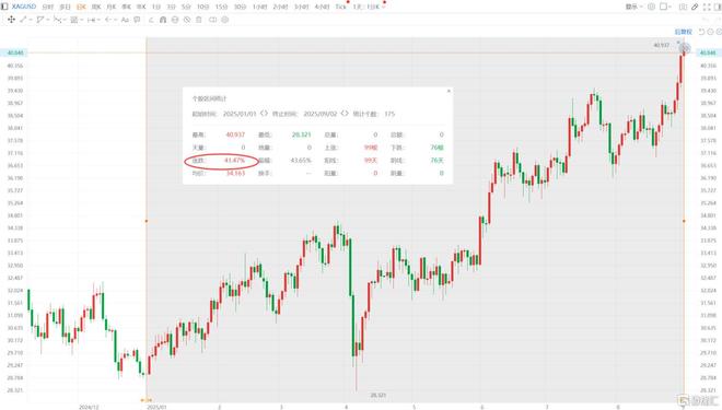 今年以来,现货黄金价格已累计上涨逾30%,成为表现最佳的主要大宗商品之一。 值得一提的是,同为避险资产的白银价格涨幅甚至更胜一筹。 年内,白银价格已经累计上涨逾40%。周一,银价突破40美元/盎司关口,为2011年以来首次。