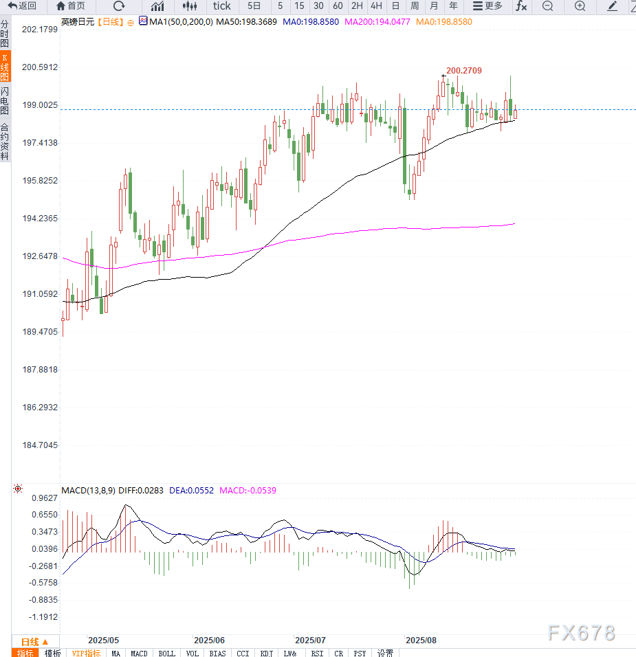 英镑兑日元周三亚盘短暂冲高至199.00上方,但很快遭遇抛压回落,目前交投在198.65附近,走势较为谨慎。投资者在英国财政压力和日本国内不确定性之间权衡,导致该货币对缺乏明确方向。 ![]() 日元方面,市场情绪同样复杂。日本国内政治不确定性上升,前首相麻生太郎可能推动执政党内部选举的报道增加了市场担忧。 与此同时,日本央行副行长氷見野良三重申应逐步加息,但强调全球经济不确定性高企,未能释放足够的鹰派信号。这导致市场继续建立日元空头仓位,使得GBP/JPY下行空间受限。 短期市场关注焦点在英国服务业PMI终值(周三公布),英国央行副行长Sarah Breeden讲话,日本国内政治动态及央行后续表态 从技术面来看,GBP/JPY在年内高点附近遇阻:支撑位:198.20(本周低点)、197.50(前期平台)阻力位:199.50(近期高点)、200.00(心理关口)短期维持在 197.50—199.50区间震荡,缺乏突破动能。 ![]() 目前GBP/JPY走势处于双重博弈中:英国财政忧虑使英镑承压,但日本央行态度谨慎及国内政治不稳又削弱了日元避险属性。 整体来看,GBP/JPY缺乏趋势性突破,投资者需警惕英国财政风险进一步恶化,以及日本政治局势可能引发的市场波动。短期内,更倾向于在区间内进行高抛低吸操作。 |