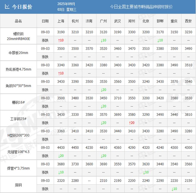 影响钢价因素 01 聊城市全面解除生产管控 据调研,9月3日12时起,聊城市全面解除生产管控,午后所有生产企业均可正常生产。 解读:此前因管控导致部分钢管企业停产,解除管控后企业复产,短期内可能增加市场供应。但当前钢材市场整体需求偏弱,新增供应可能加剧供需矛盾,对钢价形成一定压力。不过,若复产节奏缓慢,短期影响相对可控。利空钢价走势。 02 247家钢厂铁水日产240.13万吨 247家钢厂日均铁水产量维持在240.13万吨的相对高位,虽然环比微降0.62万吨,但绝对水平仍然高位。目前已经进入了消费旺季,但是钢材的库存没有随季节性因素出现去库的情况。也说明了钢材下游需求难以有效消化240的铁水产量带来的供应增量。 解读:铁水日均产量维持在240万吨以上高位,钢材整体供应维持高位,库存连续累库,市场供应压力依然比较大,虽然进入9月需求逐步启动,但市场整体成交依然较弱,供需基本交易逻辑占据主导,市场预期较差,利空钢价走势。 03 36家上市钢企公布上半年业绩