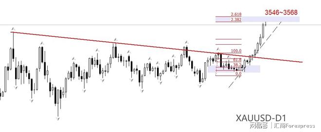 技术角度看,日线级别,4月22日以来的收敛三角形结构已经被最新的上涨波段破坏。8月27日K线上破三角形上轨,28日长阳线确认有效突破,随后迎来连续四个交易日的大幅拉升。最新市价在3530美元附近波动,距离下一个阻力区间3546~3568(对应2.382~2.618的黄金分割区域)较近。如果市价运行到该阻力区间,可能曾受较强抛压,遇阻回落概率较高。 ATFX风险提示、免责条款、特别声明: 市场有风险,投资需谨慎。以上内容仅代表分析师个人观点,不构成任何操作建议。请勿将本报告视为唯一参考依据。在不同时期,分析师的观点可能发生变化,更新内容不会另行通知。 |
