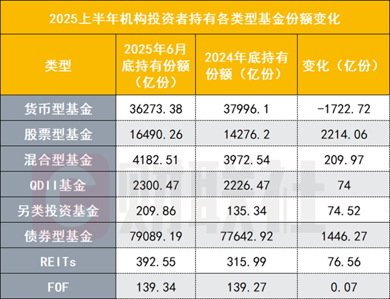 财联社9月3日讯(记者周晓雅)随着基金2025年的中报披露,机构投资者上半年在基金市场的调仓动向也浮出水面。 Wind数据显示,截至今年6月底,机构投资者在公募基金市场的持有份额达到13.91万亿份,较去年底增加了2372.71亿份。 具体到细分类型来看,天相投顾数据则显示,机构投资者持有份额最多的基金类型为债券基金(79001.86亿份),2025年上半年机构持有份额环比下降幅度最大的是货币市场基金,环比下降4.69%。 与之相对应的是,股票基金的持有份额占比回升。数据显示,截至今年6月底,机构投资者的股票基金持有份额占比达到45%。 调仓之下,机构投资者的最新偏好也显现。在权益基金方面,多只港股主题基金被增持力度居前,机构投资者合计持有份额前十的权益基金均为ETF产品;债基方面,被动指数型投资也愈发受到机构投资者青睐,同时,混合二级债基也得到增持,而货基则被赎回最多。 多只港股主题基金被买入 各细分类型中,机构投资者持有的股票型基金份额在今年上半年增量最为显著(增加2214.06亿份),截至今年6月底的持有份额达到1.65万亿份。 ![]() 具体到单只产品,作为上半年被净申购最多的股票型基金。富国中证港股通互联网ETF也是机构投资者上半年增持力度最大的股票型基金,上半年机构投资者的持有份额合计增加了218.27亿份,继续维持九成以上的持有份额占比。 该ETF的前十大持有人也在期间出现新变化。中国人寿保险仍是第一大持有人,但持有份额已经增至45.74亿份,环比增加了六成的份额。 另外,中国平安财产保险股份有限公司-传统-普通保险产品、中国石油化工集团公司企业年金计划-中国工商银行股份有限公司、中国石油天然气集团公司企业年金计划-中国工商银行股份有限公司等也是上半年新进该ETF前十大持有人的机构投资者。而外资巴克莱银行则退出前十大持有人行列。 跟随其后,广发基金和易方达基金旗下的中证A500ETF也成为上半年机构申购较多的股票型基金。由于两只产品都是在去年11月上市,去年年报数据未披露,但上市以来至今年上半年底,机构持有份额均增加了百亿份以上。 工银国证港股通科技ETF、景顺长城中证港股通科技ETF在今年上半年则分别被机构投资者增持了99.5亿份、91.75亿份。 这2只基金的前十大持有人也几乎被险资、企业年金计划等占据,且中国人寿保险均为第一大持有人。 沪深300ETF仍为机构持有最多的股基 整体来看,华泰柏瑞沪深300ETF仍是机构持有份额最多的股票型基金,截至今年6月底,机构投资者持有份额合计为825.66亿份,上半年机构对该基金增持了77.67亿份。 ![]() 其中,中央汇金资管新进为第一大持有人,上半年增持了112.37亿份。北京诚通金控投资有限公司也新进前十大持有人行列。友邦人寿保险、中国人寿保险等则出现了减持动作。 易方达沪深300ETF、华夏上证50ETF也分别被机构持有662.29亿份、529.3亿份,上半年增持了48.66亿份、55.33亿份。 同样地,这2只产品也是被中央汇金资管大举增持。 至于被减持的股票型基金中,国泰基金、招商基金、南方基金、摩根基金、银华基金等5家基金公司旗下的中证A500ETF被机构投资者的减持力度最大。 从前十大持有人来看,上述产品有部分出现险资的减持。比如,国泰中证A500ETF的第一大持有人中国人寿保险对其减持5.25亿份,中国平安人寿保险的自有资金则是减持2.68亿份。 如果从机构持有的权益产品来看,机构持有份额前十的权益产品均为ETF基金。 债基也被青睐 除了股票型基金以外,债基也在今年上半年被机构投资者增持较多,上半年合计持有份额增加了1446.27亿份。其中又以被动指数债基、混合二级债基增持力度较大,分别在上半年被机构投资者增持了607.34亿份、625.14亿份。 作为机构投资者持有份额最多的1只被动指数型债基,汇添富投资级信用债指数截至今年6月底为机构投资者持有221.27亿份,较去年底增加104.94亿份。 南方7-10年国开债、鑫元1-3年国开债也在上半年被机构投资者增持超70亿份。永赢中债-1-5年国开债指数则是上半年被机构减持了167.09亿份。机构投资者在上银中债1-3年国开债、华夏彭博中国政策性银行债、新华中债0-3年政策性金融债、中银彭博政策性银行债券1-5年等的减持份额数也超过了40亿份。 至于混合二级债基,机构投资者在中欧丰利的持有份额增量最大,达到65.9亿份,截至上半年底持有份额为115.28亿份,也是同期机构投资者持有超百亿份的3只混合二级债基之一。该基金今年6月底规模也创新高至128.42亿元,年内净值回报也达到6.15%。 高楠和余国豪管理的永赢稳健增强也被机构投资者上半年增持59.44亿份。这也使得该基金的机构投资者持有份额占比从去年底的六成左右,提升至今年6月底的九成以上,基金规模则攀升至75.28亿元。 另一方面,货基则是上半年被机构投资者减持力度最大的,数据显示,机构投资者合计减持了货基1722.72亿份,至3.63万亿份。 |