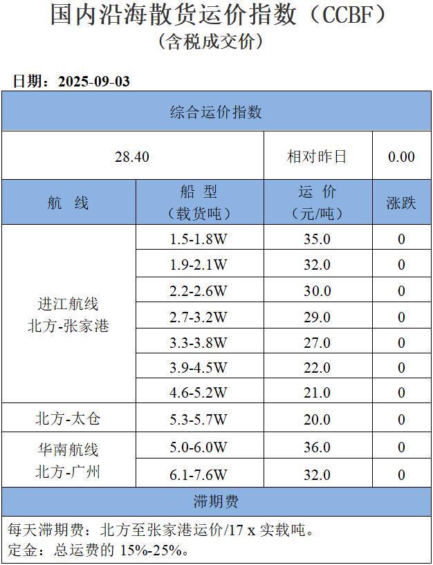 今日国内沿海市场整体维稳,各船型海运价格底部盘整走平。