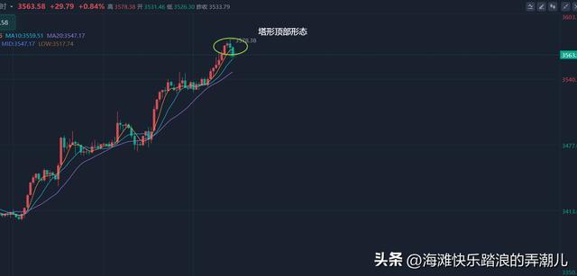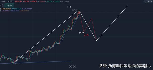 黄金走势分析 盘面分析:1小时周期局部破位3530-3538窄幅震荡区间后连续录得7根阳线呈震荡上行,现局部于阶段性高点3578附近接连录得2根阴线构筑塔形顶部形态,于关键点位录得反转形态且1小时周期的RSI一直处于顶背离状态、1小时周期的成交量随行情上行而明显缩减亦呈顶背离,由此我们可推演:顶部已成,1小时周期依托于20日均线上涨的行情或暂时告一段落,后市或将迎来中期回落调整。根据相关理论可知,顶部形态完成后可选择收线后追空或者反弹做空,防守阴线高点即可,即目前3563-3568区间为空单入场点位,防守点位可选择3573上。 波浪结构:由前文分析可知,现行情处于大一级别的5浪上行之中,为方便分析,我们可将5浪再次细分成小5浪结构,因局部已有反转形态,故我们可将3311-3578视为5-1浪,现行情处于5-2浪回落调整之中,其理论底部位于3410附近,后续根据盘面信号确定。因2浪调整一般以锯齿浪调整,故将5-2浪继续细分,如图所示。由于目前是以局部的塔形顶部形态的完成作为5-1浪结束的依据,故后市若继续上破,我们再另行分析。 支撑和阻力:因3530-3538作为短线的盘整区间,现已转换成短线支撑区间,故下方的第一支撑区间看3538-3530,下破则继续关注3509;上方关注3573-3578短线阻力区间。 黄金操作建议: 不管局部的塔形顶部形态是否是中期调整的开端,但反转形态与成交量背离和RSI背离相互验证,短线或多或少会有回落,故顶部接空是可取的。 建议可于现价3565跟进空单,止损3574,目标看3555-3545,破位3530可作为中期空持有。 国内金价=国际黄金价格*美元兑人民币实时汇率/31.1035,积存金、纸黄金和黄金TD可参考。 |
